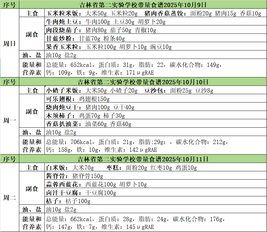 25-26上2025年10月9日---10月11日学生午餐食谱