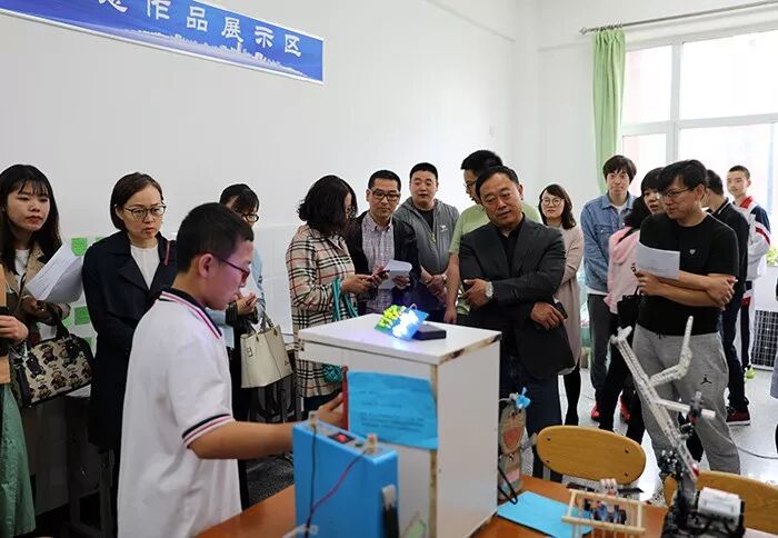 在紫丁香盛开的时节,吉林省第二实验(高新 远洋)学校迎来了“勇毅创新,畅想未来”第二届科技周活动,本次科技周隆重、精彩、务实,进一步推动了学校创新教育的发展,点燃了广大少年发明创新的热情。本次科技周系列活动有“知识产权教育宣传、科学与技术讲座、发明与创作展”等内容。其中发明与创作展有两个方面的作品:科技发明和创造与“未来世界”创意画。 知识产权教育宣传 科学大讲堂活动 2018年5月29日,吉林省科技厅专利管理处仲崇玉副处长、法规处卢晓冬副处长,长春市科技局机关党委张国忠副书记、专利管理处李铭处长、知识产权保护协调处李冰处长、专利管理处李长翠副处长,以及吉林电视台来宾等共10位人士莅临吉林省第二实验高新学校,参观并指导了中学部和小学部的发明与创作展,其中也包含学校的异想创客工作室、生态园创客空间等展示的成果。前不久,吉林省第二实验高新学校参评了“长春市知识产权试点校”,所以各位领导的光临是指导,也是一次实地考察与检验。 学校领导陪同省科技厅和市科技局的领导参观发明展 高新小学部的两名小创客分别制作了“土火箭”和“冰冻手指”作为见面礼,迎接嘉宾的到来。火箭展现了“威力”后,各位领导又饶有兴趣的观看了“冰冻手指”魔术表演:倒入杯子中的明明是常温的水啊,怎么一伸手指头,就被冻成小冰坨了呢?在场的各位嘉宾在赞赏的同时,眼神中也产生了好奇。小创客看在眼里,内心窃喜:小魔术已经达到预期效果! 接下来,中小学的各种小发明、小创造以及创意满眼映入:渴了,试喝一下风味发酵机酿制的风味酸奶饮料;饿了,让“抓面包机器人”给你抓个“面包”。“吃完喝完”想展示臂力?那就和“液压机械臂”比试比试。输赢不要紧,再看看“未来世界”主题创意画,共同徜徉一下想象力。 来到操场,换换“大脑功能区”,看一看无人机“飞行中队”的表演:十二架四轴无人机编队飞行,“大型”直升机上下倒置飞行…… 参观完毕后,由康建国副主任对各位领导作了关于省二实验高新学校知识产权工作的汇报。在会上,陈杰校长和王洪杰书记与厅局各位处长就知识产权教育及创新教育进行了交流。 陈杰校长对各位嘉宾的光临指导 表示欢迎和感谢 省科技厅和市科技局领导 听取我校知识产权教育工作汇报 领导和嘉宾参观生态园创客空间 领导和嘉宾观看无人机飞行表演 参观无人机飞行表演后, 各位领导与在场师生合影留念 直升机上下倒置飞行 智能服务椅 智能花匠 展现自己组装的智能步枪 用脱口秀的形式讲解发明作品 创意画“未来的果园” 如果说省二实验高新学校的科技周活动“隆重、丰厚”,那么省二实验远洋学校的活动就是“精巧、务实”了。省二远洋的发明与创造展中,很多作品都是面向生活而研发,如声光自动取水器、啤酒搬运器、物流分类、无线充电、视力矫正提示器等,让人感受到“科技改变生活,就在今天和明天”。 校党委王洪杰书记与小发明家亲切交谈 省二远洋的GAMP创客工作室、智享创客工作室和创艺创客工作室,在本次科技周中纷纷展示了他们的“杀手锏”,作品兼顾创新性和实用性,这与创客教师们平时的引导是分不开的。当王洪杰书记参观到GAMP创客工作室的飞行器制作区时,王书记拿起手机作比喻,形象而又幽默地讲解了飞机飞行中的仰角和飞行稳定性之间的关系,引起大家阵阵会意的笑声。 评委们参观GAMP工作室飞行器制作区 就发明作品进行点评和交流 观看酒保机器人的操作 声光全自动取水器吸引了大家 金龟子坐姿矫正提醒仪 便携式消毒拖布 跳跳车 学生通过电脑绘制创意画 “未来世界”主题创意画展 评委们阅读学生参与科技周活动的 感悟随笔 翻过“远洋”这一页,映入眼帘的是省二实验学校。2018年5月31日,随着八个自制火箭的腾空而起,南湖中学部科技周开启了壮观和精彩!南湖中学部张婕副主任面向全体中学生作了鼓舞人心的演讲,随后八轴无人机的空中灭火的绝佳展示,震撼了在场的每一个人的心。 这种创意的表达,离不开疯狂引擎创客工作室的努力,该工作室的无人机项目,不但能展示复杂的飞行表演,而且配置一定的实用功能,实现一箭双雕的效果。此外还把无人机所用的单片机迁移到机器人上,取得了很大的成功。 随后,学生们依次参观了各种发明创造,大家的脸上有专注、有喜悦、有惊奇、有向往,“摩天轮停车场”“校园卫土多功能防爆消防车”“太极机器人”“多功能茶水分离器”……设计之精巧以及隐含的思维质量,给人的感觉都是惊艳! 中学部张婕副主任在科技周启动仪式上向同学们做了鼓舞人心的发言 八轴无人机的精彩表演 师生共同观看发明作品展示